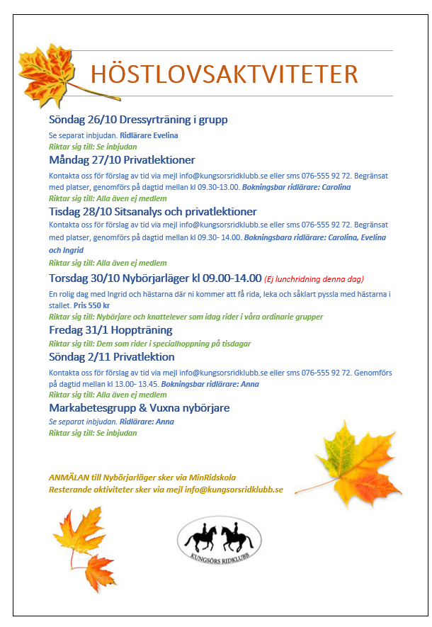 Som medlem i Svenska Ridsportförbundet är du olycksfallsförsäkrad … Läs mera …